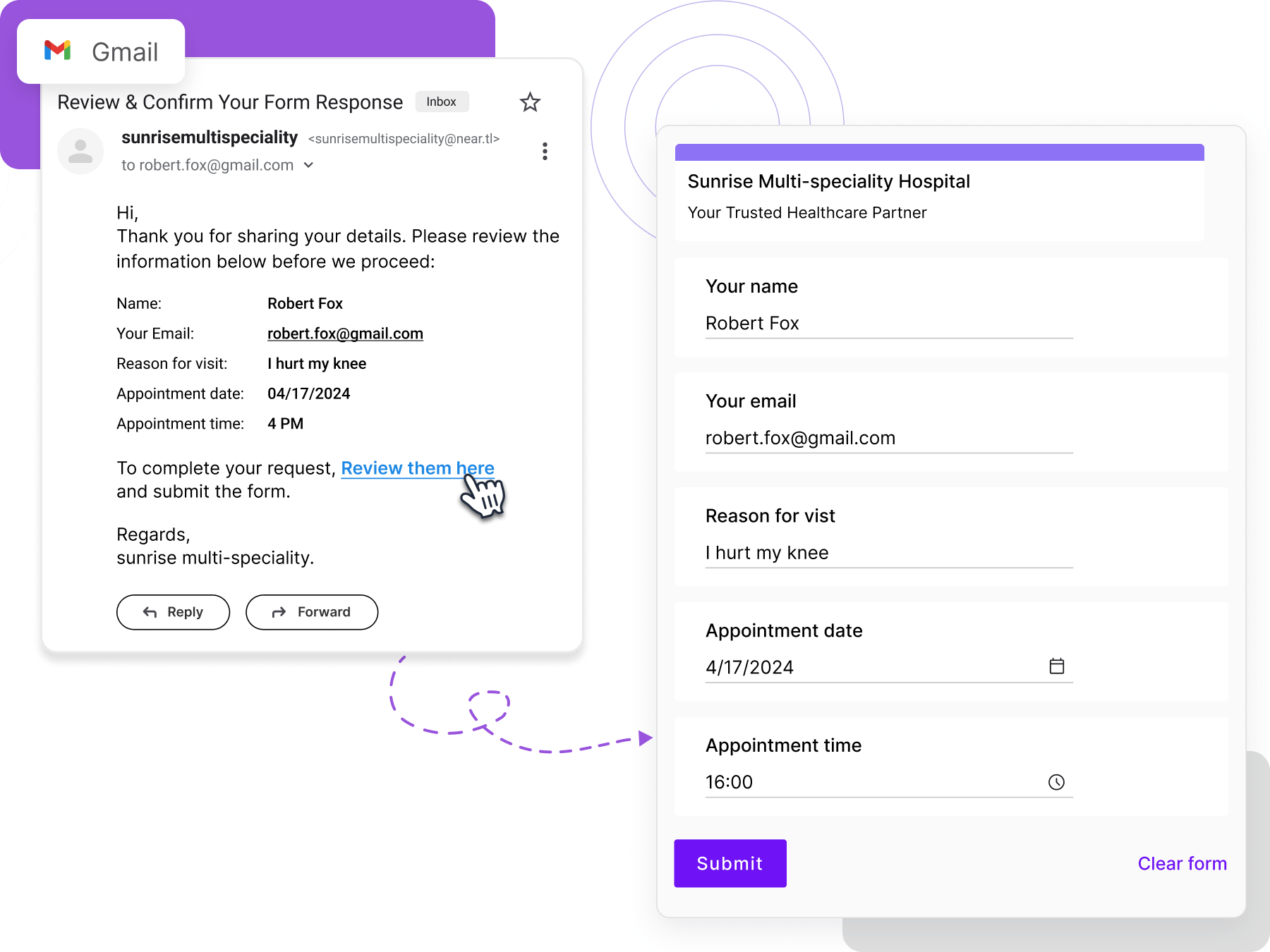 Create a professional email address like businessname@near.tl and automatically convert incoming emails into clean, structured data in Google Forms.